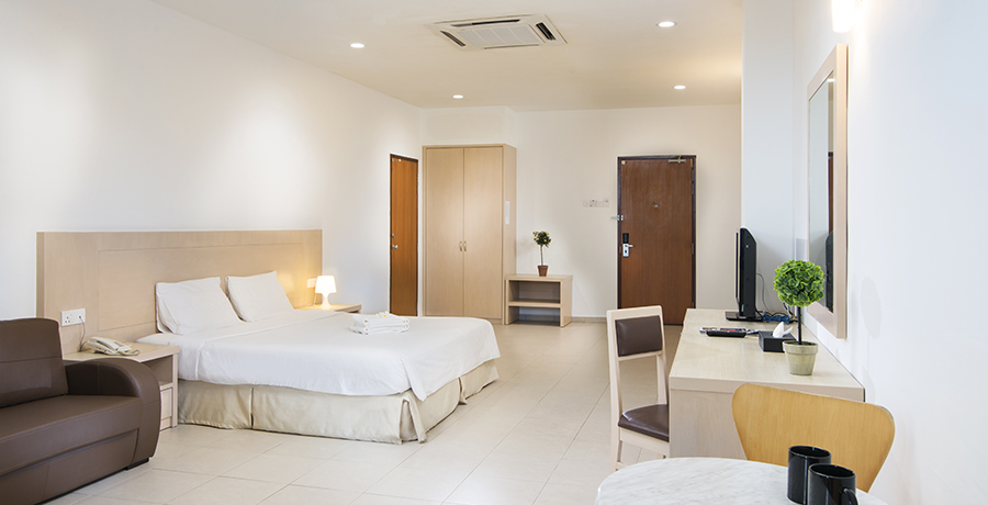 - Unit suite OYO Cimahi yang luas dirancang dengan perabotan King Bed atau 2 x Full Size Bed (4 kaki)